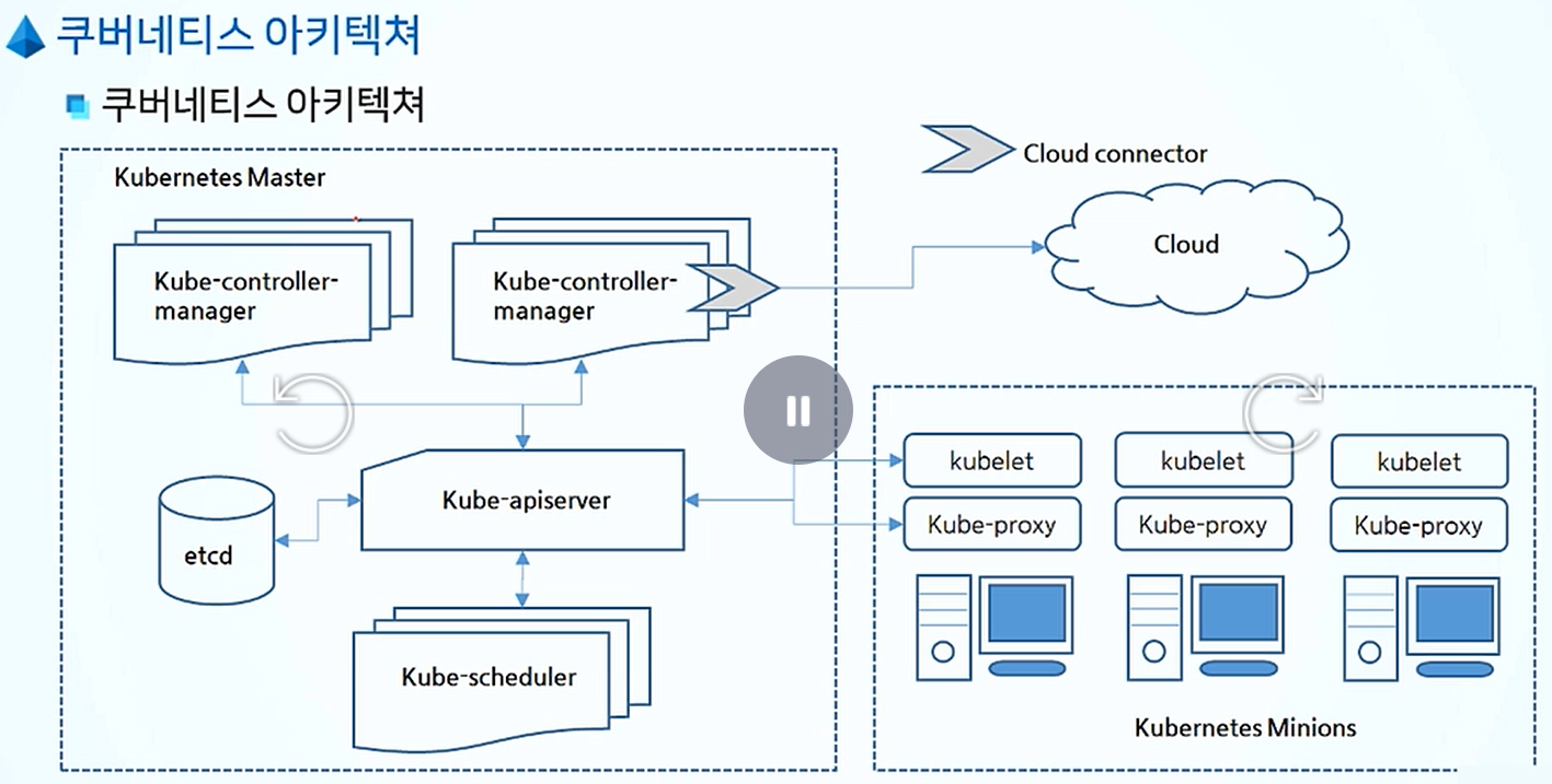 - 클러스터 전체를 관리하는 컨트롤러로써 마스터