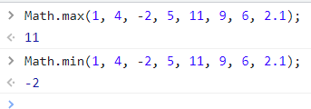 Math.min(1, 4, -2, 5, 11, 9, 6, 2.1);