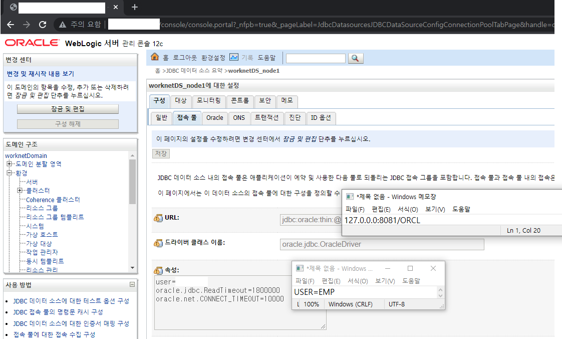 SID가 ORCL인 DB에 EMP 계정으로 접속하는 상태에서 TIMEOUT을 설정합니다.